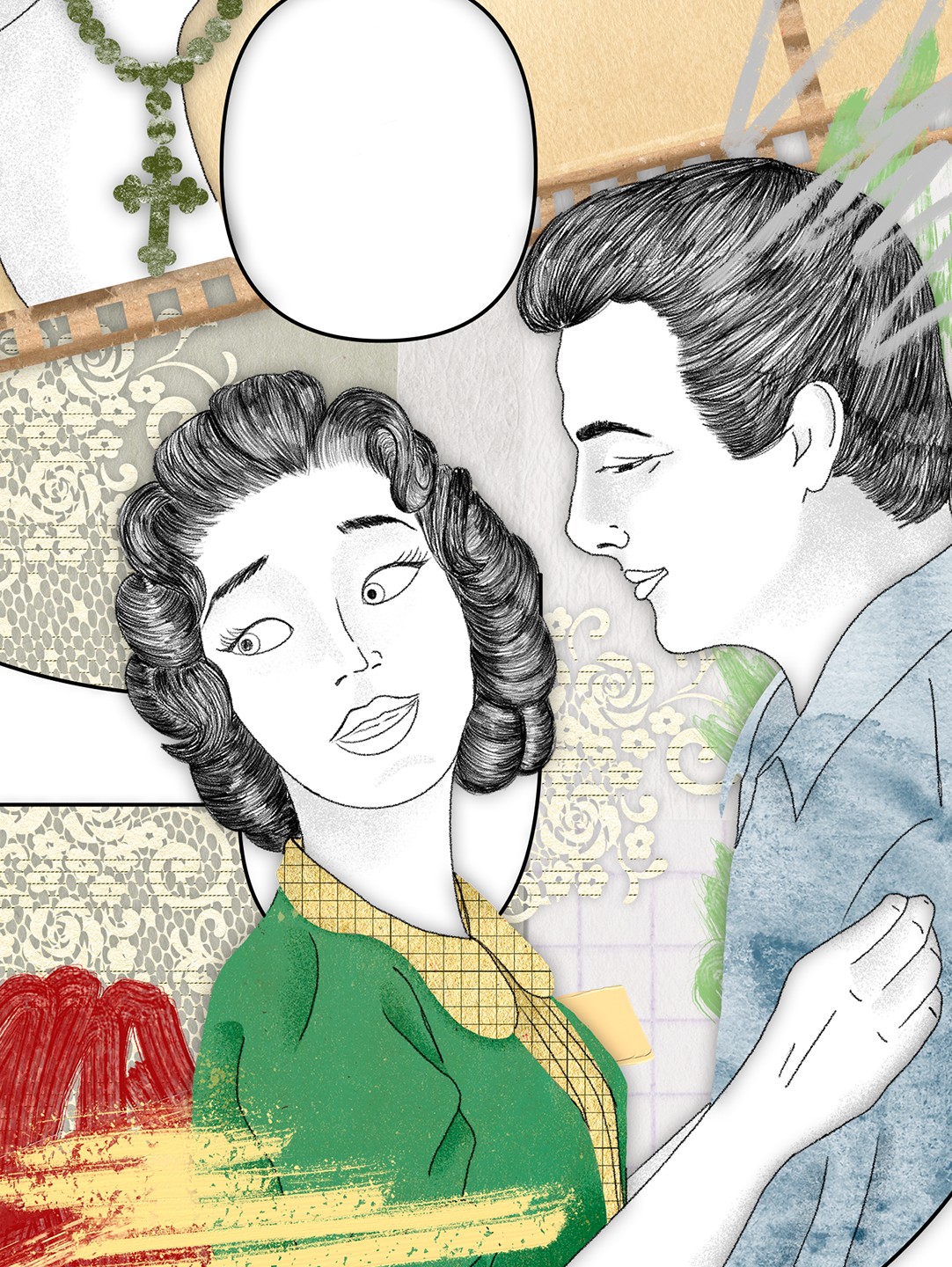 The character of Julia wrestles with the guilt she feels about her thoughts. Despite this, she is torn between the love and desire she feels for her boyfriend and the social constraints they face. The scene takes place in a cinema, using the film reel to contextualize the space.